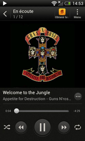 Enfin, le lecteur audio est lui aussi très correct par rapport au positionnement de l'appareil. Malgré le logo « Beats Audio » qui figure sur le dos du smartphone, il ne faut toutefois pas vous attendre au même niveau d'options que sur les autres smartphones récents du constructeur. Alors que ces derniers proposent plusieurs égaliseurs réglables, dont celui de Beats Audio, il faut ici se contenter de pouvoir l'activer ou le désactiver. Notez également la présence de Sound Hound (un équivalent de Shazam), et d'une fonction radio FM. Mais ce qui importe le plus pour un lecteur musical, c'est la qualité de son rendu sonore. Et de ce point de vue, le Desire C étonne encore. Il propose une qualité de son vraiment bonne, sans défaut majeur.