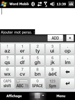 Bon point, le Touch Diamond gère la suggestion de mots lors de la saisie. On peut également ajouter des mots directement pour les prochaines suggestions de saisie :