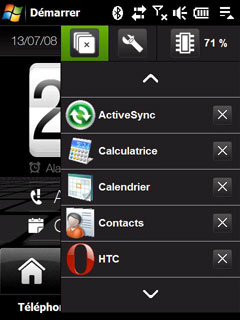 Indispensable sur un PDAphone Windows Mobile à la gestion de mémoire délicate (les applications ne se ferment pas et restent en mémoire), un gestionnaire de tâches est fourni par HTC. Il permet d'arrêter en deux clics une application :