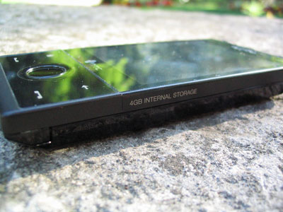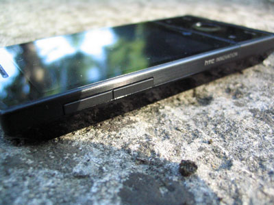 Sur le haut du Touch Diamond, on a le bouton de veille permettant d'éteindre ou d'allumer l'écran, mais le PDA est toujours fonctionnel et peut toujours recevoir un appel. Sur le côté gauche de l'appareil, on trouve deux boutons permettant de régler le volume. Sur le côté droit du Touch Diamond, pas de bouton, sur le côté gauche, juste une inscription mentionnant les 4 Go de mémoire interne. On notera l'absence du bouton permettant de mettre en route l'appareil photo et servant également de déclencheur.