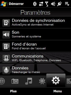 Un onglet Paramètres qui permet notamment de changer très simplement son fond d'écran.