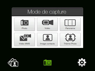 A l'écran est affiché le nombre de photos que l'on peut faire, dépendant de l'espace mémoire libre restant. Le raccourci du milieu permet de changer le mode de capture (photo ou vidéo) :
