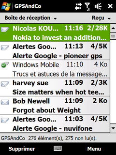 L'application de messagerie est compatible avec les mails HTML et la gestion des entêtes permet de ne télécharger que le début des emails afin de préserver son forfait Internet Mobile.