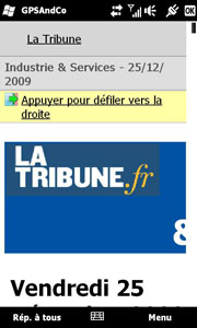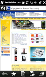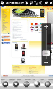 Le HD2 utilise Windows Mobile 6.5, et c'est une nouvelle version d'Internet Explorer qui est fournie. On peut désormais zoomer ou dé-zoomer en double cliquant et également se déplacer dans la page en la faisant glisser du doigt. On peut également zoomer avec la petite réglette affichée à l'écran.