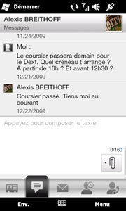 Pour chaque contact, on a l'historique des SMS échangés, dans un autre onglet les Emails et dans un autre l'historique des appels :