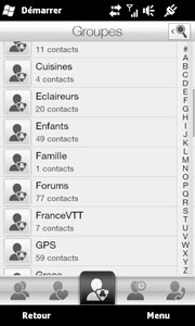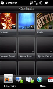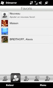 On peut paramétrer des contacts favoris et ils sont accessibles directement depuis l'onglet dédié dans l'interface HTC Sense :