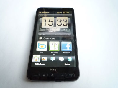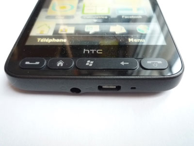 Seulement 4 touches sur le bas du smartphone, le reste de la face avant étant occupée par l'écran, avec les traditionnelles Décrocher et Raccrocher, cette dernière également à allumer et à éteindre le mobile. Egalement une touche pour le menu Démarrer, une pour la page d'accueil du HD2 et une autre pour annuler. En revanche pas de joypad, comme sur les derniers smartphones de la marque.