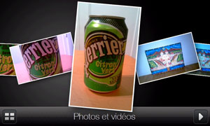 La visualisation de photos se fait également depuis l'interface HTC Sense au travers d'un onglet dédié et l'affichage change si on met le HD2 à l'horizontale. On peut visualiser les photos en plein écran et même les partager directement via Email, MMS ou Facebook.