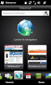 Le HD2 est également livré avec le navigateur Opéra Mobile et ce navigateur est mis en avant par HTC : c'est lui qui proposé dans l'interface HTC Sense et c'est le navigateur par défaut :