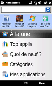 Nouveauté de Windows Mobile 6.5, le HD2 permet d'accéder à MarketPlace, le portail de téléchargement d'applications de Microsoft, à la manière de l'AppStore d'Apple pour l'iPhone. MarketPlace propose des applications gratuites et payantes. Mais contrairement, à l'Appstore, pas besoin de rentrer son numéro de carte de crédit pour télécharger des applications gratuites, il suffit de créer un compte Windows Live.