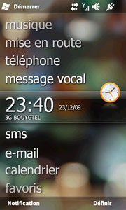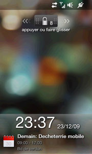 L'écran Aujourd'hui est entièrement nouveau et on fait défiler au doigt pour afficher les éléments connexes et y accéder directement. Autre nouveauté de Windows Mobile 6.5, le déverrouillage en faisant glisser le doigt, inspiré de l'iPhone :