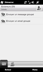 On peut créer des groupes et on peut même envoyer directement un message SMS ou un email à tout le groupe :