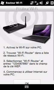 Nouveauté chez HTC, le HD2 intègre un utilitaire permettant de partager en Wi-Fi la connexion 3G+ du smartphone. Pratique pour se connecter à Internet avec plusieurs terminaux quand on est sans connexion Internet fixe, par exemple en vacances. Mais attention, tous les opérateurs cellulaires n'autorisent pas cette fonctionnalité.