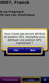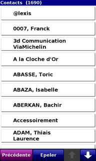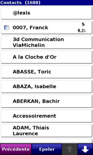 On peut choisir un contact du répertoire comme destination mais le logiciel ne tient pas compte de son adresse, il faut d'abord lui associer une adresse ou une position GPS, ce qui est un peu inutile.