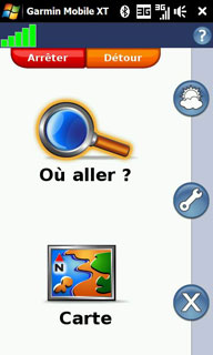 TomTom Navigator 6 n'est pas compatible avec le Touch HD mais nous avons essayé le logiciel Garmin Mobile XT dans sa dernière version, la version 5 récente. Comme TomTom Navigator, c'est un logiciel de navigation de type on-board : la cartographie est stockée sur le terminal et c'est ce dernier qui calcule les itinéraires. Pas besoin d'abonnement pour les itinéraires. Il est fourni avec de la cartographie provenant de chez Navteq et datant du deuxième trimestre 2008.
