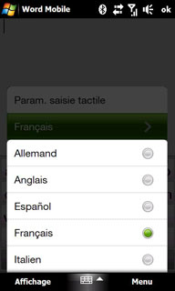 Lle Touch HD gère la suggestion de mots lors de la saisie et on peut également changer la langue du dictionnaire pour la suggestion de mots. On peut également ajouter des mots directement pour les prochaines suggestions de saisie.