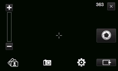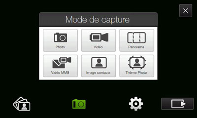 A l'écran est affiché le nombre de photos que l'on peut faire, dépendant de l'espace mémoire libre restant. Le raccourci du milieu permet de changer le mode de capture (photo ou vidéo) :