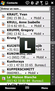 On peut aussi accéder au répertoire avec un accès direct grâce aux lettres sur le côté droit de l'écran :