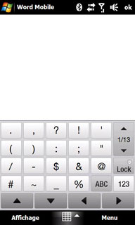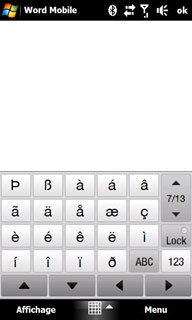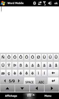 Et pour saisir des symboles ou des caractères accentués, il faut cliquer sur le bouton «123» ou « Sym ». Puis utiliser l'une des nombreuses « pages » de ce clavier (9 ou 13 pages selon le type de clavier) et que l'on fait défiler en cliquant sur ce même bouton compteur « x/9» ou « x/13» :