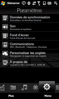Le dernier onglet « Programmes » permet de configurer des raccourcis vers les applications les plus utilisées ainsi que des écrans de paramétrage. Le Touch HD peut afficher 12 raccourcis sur une page avec 24 au total. Alors que sur le Touch Diamond, on ne peut avoir que 9 raccourcis affichés sur une page (et 18 au total).