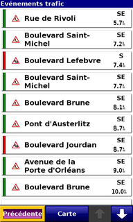 La liste des évènements trafic :