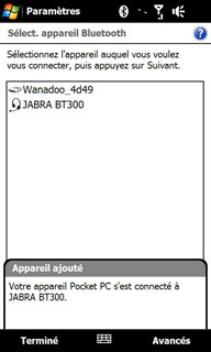 Dés que l'oreillette ou le kit mains libres est connecté, l'icône Bluetooth, dans la barre supérieure, se voit affublée d'un casque audio :