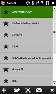 L'onglet propose également l'accès aux Favoris ainsi qu'au navigateur Internet Opéra Mobile (ici en version 9.5), qui il tire parti pleinement de l'affichage WVGA et on peut zoomer sur les pages.