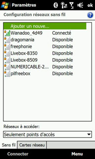 Il est compatible Wi-Fi 802.11 b et Wi-Fi 802.11 g et la sensibilité est bonne : lors de nos tests, au fond de l'appartement, le Touch HD captait bien le réseau Wi-Fi, contrairement à certains produits concurrents. Nous n'avons eu aucun souci avec une Livebox.