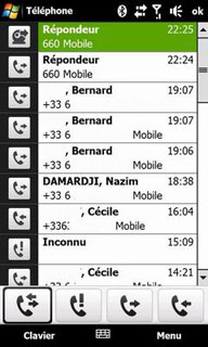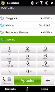 L'application de téléphonie est toujours celle de Windows Mobile mais chaque constructeur peut la relooker (skin). Le clavier numérique tactile possède de grosses touches et il est facilement utilisable au doigt.