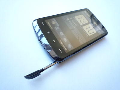 L'emplacement du stylet se trouve sur le bas du Touch HD. Le stylet sort facilement de son logement grâce à son encoche. A noter que le stylet est aimanté et que lorsqu'on le remet dans logement, à la fin, il rentre tout seul.