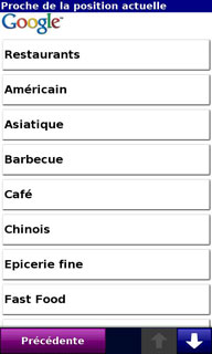 Autre fonctionnalité et nouveauté très intéressante, la recherche locale Google où l'on peut taper directement le nom du point d'intérêt que l'on cherche :