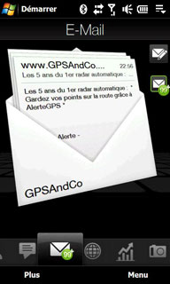 A la manière de l'iPhone, on fait un mouvement de doigt vers le haut ou vers le bas pour se déplacer vers le mail suivant ou précédent. Et dés qu'on visualise le mail, on retrouve l'interface Windows Mobile. L'application de messagerie est compatible avec les mails HTML et la gestion des entêtes permet de ne télécharger que le début des Email afin de préserver son forfait Internet Mobile si on n'a pas de forfait illimité.