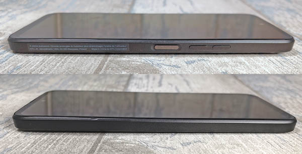Sur le profil supérieur, il y a un port audio jack 3,5 mm pour brancher un casque. On trouve également un microphone. Enfin, sur le profil inférieur, il y a un haut-parleur, le connecteur USB-C, un troisième microphone et le tiroir à cartes SIM. Il est protégé contre les infiltrations d’eau et peut accueillir soit deux cartes SIM soit une carte SIM et une carte mémoire. On apprécie de pouvoir augmenter la capacité de stockage interne. Le son délivré par le HTC U23 Pro est stéréo. Il est légèrement déséquilibré sur la droite. À fort volume, l’arrière de l’appareil peut entrer en résonance, ce qui n’est pas idéal. L’écoute est toutefois plutôt satisfaisante, même si cela manque de graves.