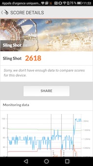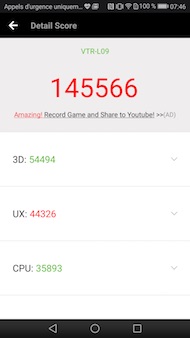 Cet équilibre et cette nervosité, nous la retrouvons en jeu vidéo. Notre jeu étalon, Dead Trigger 2 nous a fait la bonne surprise de se positionner automatiquement sur les meilleurs réglages graphiques, contrairement au Mate 9 et Honor 8 Pro avec lesquels il a fallu forcer ce paramétrage. Il s'agit, selon nous, d'une conséquence directe de l'intégration des 4 Go de RAM et du maintien de la définition Full HD. Le jeu ne s'y est d'ailleurs pas trompé : l'expérience ludique est très graphiquement bonne, avec de la fluidité dans les phases où les ennemis sont plus nombreux et de la précision dans les contrôles. Nous avons toujours un petit regret au niveau de l'emplacement du haut-parleur, lequel est régulièrement obstrué par un doigt.