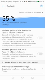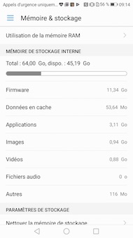 Le système d'exploitation est aussi gourmand dans le P10 que le Honor 8 Pro. Et le P10, contrairement à la phablette de Honor, profite ici largement de son quatrième gigaoctet de mémoire vive, puisque le système d'exploitation en monopolise toujours 1,5 Go, ce qui en laisse toujours 2,5 Go à l'utilisateur pour les jeux ou la vidéo, par exemple. Même chose du côté du stockage, puisque le système d'exploitation et les applications préinstallées laissent plus de 50 Go à l'utilisateur pour stocker des photos, des jeux ou des applications. Ce qui nous amène à l'autonomie du mobile qui dépasse les 7 heures 30 d'utilisation continue (c'est-à-dire sans faire aucune pause, ce qui n'est pas une condition normale), soit un peu moins d'une heure de plus que le P9.