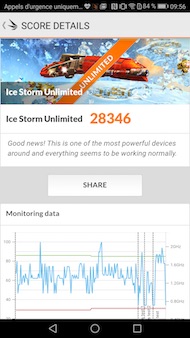Venons-en aux performances. Pour rappel, le P10 est équipé d'un écran Full HD, de 4 Go de mémoire vive et d'un Kirin 960, déjà croisé avec le Mate 9 et le Honor 8 Pro. Comme toujours, nous publions ici le meilleur score obtenu dans chaque série de tests. Et nous ferons nos commentaires ensuite. Sur Antutu, nous obtenons 145566 points. Sur Basemark OS II, nous obtenons 2946 points. Sur Geekbench, nous atteignons 1865 points en single-core et 6388 points en multi-core. Sur Basemark X, nous obtenons 44403 points en qualité medium et 381236 points en qualité haute. Enfin, sur 3DMark, nous parvenons à 28346 points sur Ice Storm Unlimited, 26128 points sur Slingshot ES et 2113 points sur Slingshot ES Extreme.