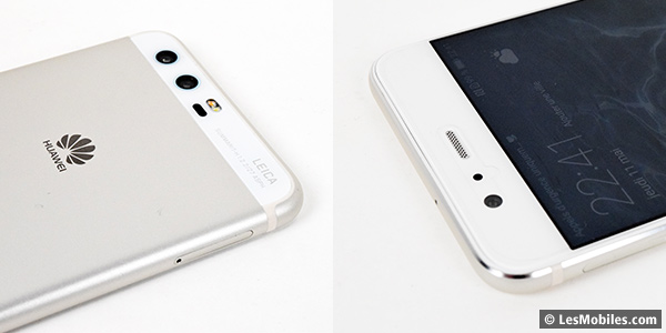 Pour le reste, aucun changement vis-à-vis du P9 : SIM à gauche, volume et mise en marche à droite, haut-parleur mono sur la tranche inférieure, avec le port USB (ici type-C) et le jack 3,5 mm. La tranche supérieure est presque vierge (puisqu'elle n?héberge que le micro secondaire). Notez que la coque d'aluminium couvre bien les tranches, mais s'arrête sous la dalle de verre minéral 2.5D, comme avec le P9. Le P10 est d'ailleurs livré avec une protection supplémentaire pour l?écran, laquelle est préinstallée.