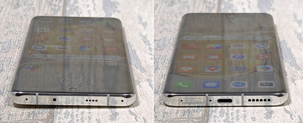 Le Huawei P50 Pro est décliné en or ou en noir. Nous avons pu tester la première version. Celle-ci est très belle et vraiment très brillante. Le revêtement arrière ne laisse aucune chance aux traces de doigt. Au dos, impossible de passer à côté des deux larges cercles sur fond noir installés dans le coin supérieur à gauche pour intégrer les capteurs photo et le flash. Il fait un peu penser au Honor 50 et marque une certaine rupture avec le design des appareils photo du précédent modèle, le P40 Pro qui avait un bloc rectangulaire. Si on fait le tour du smartphone, nous pouvons voir le bouton d'alimentation sur le profil droit, juste en dessous du double bouton pour gérer le volume. Sur la tranche inférieure, il y a 2 microphones, un émetteur infrarouge pour le transformer en une télécommande universelle et un haut-parleur pour un son stéréo étant donné qu'il y a un autre haut-parleur installé sur la tranche inférieure. C'est là aussi que l'on trouve le tiroir pour la carte SIM. Le logement peut supporter une seule carte de télécommunication et une carte mémoire de stockage, au format NM Card, soit celui propriétaire de Huawei. Sur le profil inférieur, il y a également un troisième microphone et bien entendu, le connecteur USB-C pour le synchroniser ou le recharger. Pour en revenir au rendu audio, celui proposé par le P50 Pro est tout à fait satisfaisant. Il lui manque un peu de basses pour offrir un spectre audio totalement cohérent mais il n'en n'est pas totalement dépourvu ce qui est appréciable.