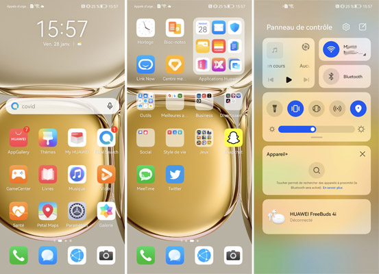 Concernant l'interface proposée au sein du Huawei P50 Pro, elle est identique à celle offerte sur le Huawei P50 Pocket. Aussi, nous vous invitons à lire notre test du P50 Pocket pour en savoir plus. Rappelons brièvement que le P50 Pro ne peut pas utiliser les Google Mobile Services et propose une version Open Source d'Android avec une surcouche EMUI 12.5. Le moteur de recherche Petal Search est disponible pour trouver des applications qui ne seraient pas disponibles au sein de la plateforme d'applications App Gallery. Globalement, l'expérience est ici la même qu'avec le P50 Pocket. Elle est satisfaisante tant qu'on n'a pas besoin de Google. Il y a quelques astuces pour ajouter des raccourcis, ou se servir de solutions alternatives mais parfois, cela reste compliqué.
