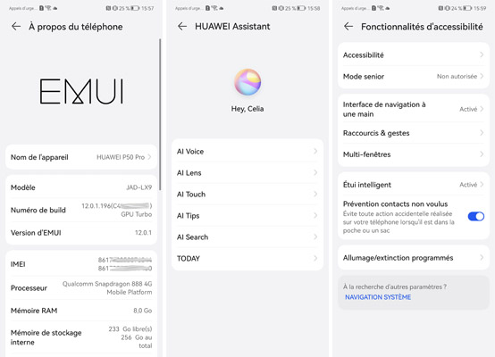 - Système d'exploitation : Android 11 Open Source, EMUI 12.0