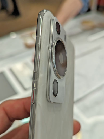 En effet, il ne s’agit pas d’une pièce fabriquée et reproduite sur autant de mobiles que la marque pourrait en fabriquer. Non, chaque pièce est unique et exclusive. Aucun smartphone P60 Pro n’a les mêmes motifs à l’arrière. Cela permet de cultiver l’idée de la personnalisation. Le dessin de l’îlot pour les capteurs photo est également original. En effet, dans le sens vertical, on pourrait se dire qu’il n’est pas si inédit que cela mais en orientant le téléphone en mode paysage, on se rend compte que les designers l’ont pensé comme pour avoir l’apparence d’un appareil photo numérique classique. Dans cette position, on peut donc voir deux petites parties rondes et ovales qui encadrent un plus large cercle. Ce dernier contient le capteur photo principal de l’appareil. Il s’agit d’un capteur Sony IMX888 capable de proposer une ouverture variable. Celle-ci peut ainsi varier entre f/1.4 et f/4.0 proposant ainsi différents niveaux de captation de la luminosité ambiante (10 exactement). Le capteur en question est stabilisé optiquement, ce qui permet de limiter les bougés.