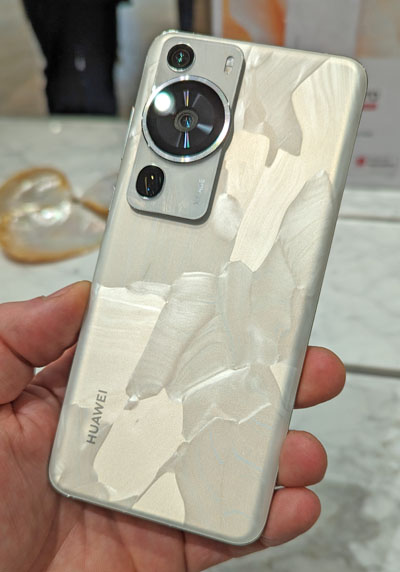 Le design du nouveau smartphone Huawei P60 Pro est particulièrement remarquable. Déjà, ses lignes sont agréables à l’œil avec certaines courbes et d’autres plus droites, dans une parfaite harmonie. Les profils sont légèrement arrondis afin d’offrir une excellente prise en main. Ils sont chromés, ce qui permet d’apporter une petite touche de luxe mais sans en faire trop. Dans sa « finition Rococo Pearl » (ici en photo), le dos est extrêmement original puisqu’il s’agit d’un revêtement nacré comportant différentes formes et totalement unique.