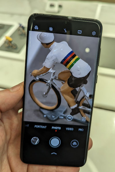 Notez que l’interface de l’application a changé. Certaines options sont désormais disponibles en bas de l’écran alors que d’autres sont toujours présentes dans la partie supérieure de l’interface. Cela permet d’accéder plus rapidement aux différentes fonctions. L’application de reconnaissance des objets est immédiatement disponible. La barre de zoom a également changé d’apparence pour se présenter sous une forme graphique plus proche de celle des appareils photo numériques classiques avec un effet de profondeur.
