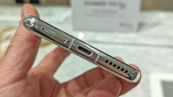 Lorsqu’on fait le tour de l’appareil, on peut voir le bouton de mise de veille qui profite d’une petite touche de couleur, comme sur les précédents modèles. Il y a également le double bouton pour gérer le volume. Sur la partie supérieure, un émetteur infrarouge permet de transformer le mobile en une télécommande universelle, le cas échéant, et en utilisant l’application idoine. On peut aussi y voir un haut-parleur. Il y en a un autre sur le profil inférieur, ce qui permet d’offrir un son stéréo. Pour l’avoir écouté rapidement, celui-ci est plutôt équilibré et profite d’une bonne tonalité générale pour un tel appareil mobile. Plutôt puissant, il est empreint d’un certain niveau de basses, ce qui n’est pas pour déplaire. L’écoute reste meilleure avec un casque mais disons que le P60 Pro donne plutôt satisfaction sur ce point qui mérite malgré tout une analyse plus poussée lors du test complet.