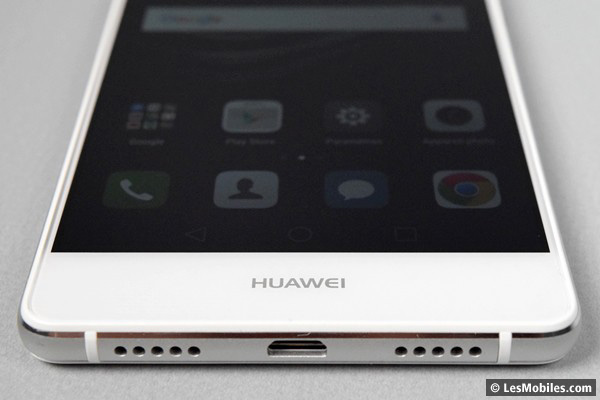Finissons avec le haut-parleur et les connectiques. Le premier est en bas à droite. Vous remarquerez que deux grilles sont présentes autour du port microUSB mais celle de gauche est purement décorative. La prise jack est en haut. Enfin, un tiroir à retirer à l'aide d'une clé (ou d'un trombone à défaut) est présent sur la tranche gauche. Il permettra d'insérer deux cartes nanoSIM ou une seule accompagnée d'une carte microSD. Pas toujours pratique. Le P9 Lite n'est donc pas exempt de défauts mais force est de reconnaître que c'est une belle réalisation dans l'ensemble. Il devrait donc vite les faire oublier.