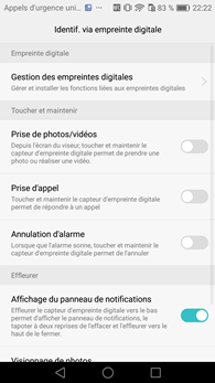 Huawei a notamment fait un excellent travail avec le lecteur d'empreinte. Il sert évidemment à verrouiller le smartphone mais aussi un coffre-fort numérique ou des applications sensibles en plus de pouvoir être utilisé comme un bouton à part entière pour déclencher une prise de vue, prendre un appel ou encore déployer le panneau des notifications un peu difficile d'accès compte tenu de la taille de l'écran. Il est de plus très réactif. Une vraie bonne surprise donc, à laquelle s'ajoutent encore des options pour l'utilisation à une main, la barre de navigation ainsi que la consommation d'énergie.