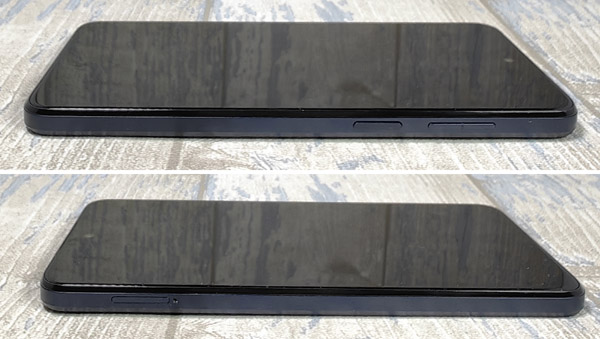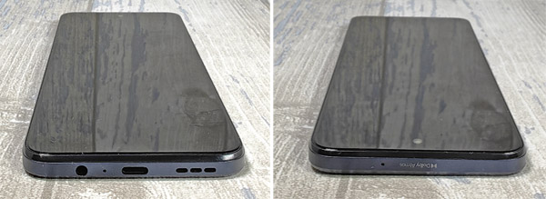 Si on fait le tour de l’appareil, on remarque la présence du bouton de mise en veille sur le profil droit. Il sert également de lecteur d’empreinte digitale pour déverrouiller le mobile. Celui-ci nous a donné pleinement satisfaction en barrant la route à d’autres doigts que celui de notre testeur. On peut peut-être lui reprocher d’être un peu haut pour l’atteindre naturellement avec le pouce. C’est aussi le cas du double bouton pour gérer le volume, placé juste au-dessus. Sur le profil supérieur, il y a un microphone et on peut voir la mention Dolby Atmos, format audio avec lequel le smartphone est compatible. Le tiroir pour la carte SIM est disponible sur le profil de gauche. Il peut accueillir une carte SIM et une carte mémoire simultanément. Enfin, sur le profil inférieur, il y a un port audio jack 3,5 mm pour brancher un casque, un port USB-C, un microphone et un haut-parleur. À ce sujet, le mobile propose un son stéréo. Celui-ci est déséquilibré, donnant plus de puissance sur le côté droit. Le son délivré par l’appareil est juste correct. Il ne faut pas monter le volume trop fort au risque d’avoir une distorsion assez prononcée.