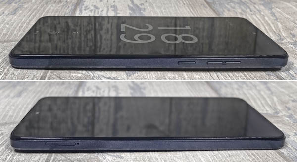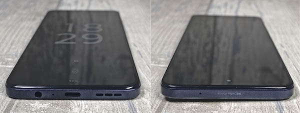 Les profils du Motorola g84 5G sont relativement plats, sauf sur les bords au niveau où l’écran et la coque arrière les rejoignent. Sur le profil droit, il y a le bouton de mise en veille ainsi qu’un double bouton pour gérer le volume. Comme sur le Motorola edge40 Neo, ils sont relativement petits, mais dépassent suffisamment pour être facilement « accrochés ». Sur le profil supérieur, il y a un microphone. Sur le profil gauche, il y a le tiroir à cartes SIM et mémoire. Il est protégé contre les infiltrations d’eau. Il peut supporter deux cartes SIM simultanément ou une seule carte SIM et une carte mémoire, le cas échéant. Enfin, sur le profil inférieur, il y a un haut-parleur, le connecteur USB-C, une prise audio jack 3,5 mm pour brancher un casque ou un ampli externe et un deuxième microphone.