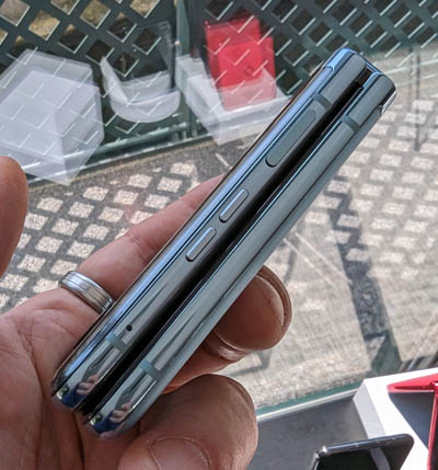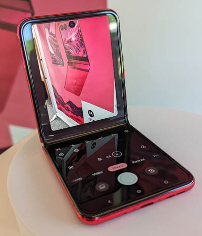 La charnière est assez robuste pour tenir en mode ouvert (mode flex) et ainsi se servir de l’écran externe comme zone de cadrage, pour prendre des selfies avec les capteurs au dos, proposant ainsi des clichés de meilleure qualité avec les capteurs à selfie.