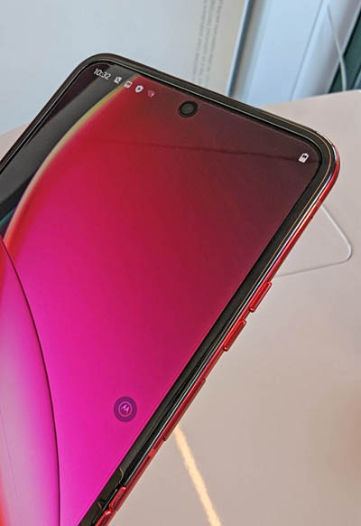 L’écran interne du smartphone Motorola Razr 40 Ultra mesure 6,9 pouces en diagonale, comme celui du Huawei P50 Pocket alors que celui du Galaxy Z Flip4 fait 6,7 pouces et celui du Oppo Find N2 Flip mesure 6,8 pouces. Il profite d’une dalle AMOLED flexible qui supporte le format vidéo HDR10+, comme l’écran interne du Oppo. Son poinçon est placé tout en haut, au centre pour abriter le capteur à selfie de 32 mégapixels. Comme sur les autres mobiles pliants, il y a un bord sur tout le pourtour. Celui-ci est assez peu épais. Au début, on y fait attention puis plus du tout, à l’usage.